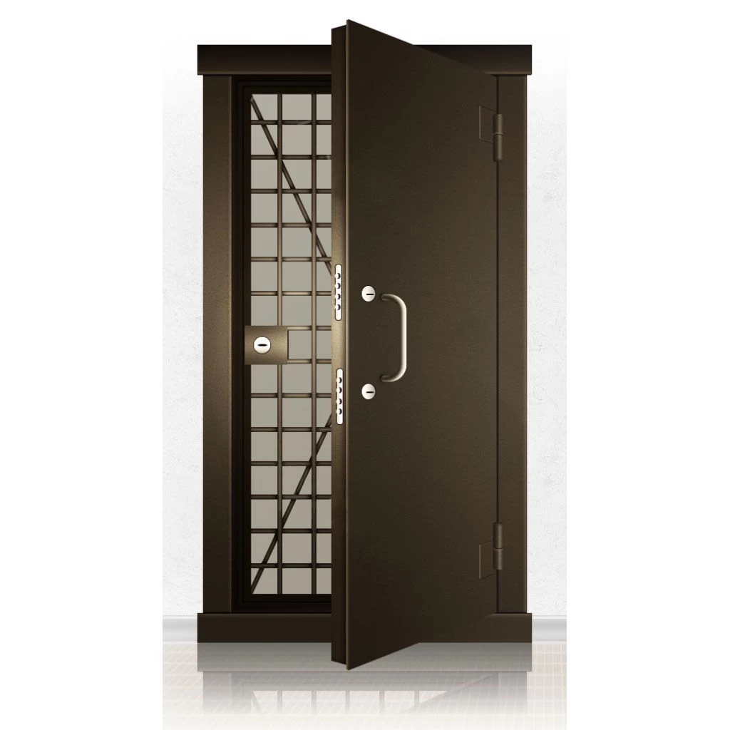 Металлические двери КХО и КХН представляют собой входные блоки, обладающие высоким уровнем взломостойкости и состоят из трех основных элементов: усиленного каркаса, сплошного металлического полотна и решетчатой двери. Дверной блок изготавливается из стального уголка 100*100 мм. Места крепления блока к стене цементируются и закрываются стальными наличниками шириной 40 мм. Крепеж заходит вглубь стены на 80 мм. В конструкции внешней створки монтируются ребра жесткости, для обшивки используется сталь толщиной не менее 3 мм. Внутренняя решетка изготавливается из прутка диаметром 16 мм. Размер ячеек решетки должен составлять не более 15 на 15 см. В точках пересечения прутья надежно приваривают друг к другу. В КХО и КХН необходимо поддерживать определенную температуру и влажность. Для этого внутреннее пространство глухой двери заполняется теплоизоляционным материалом, а по периметру двери приклеивается уплотнитель. Такие двери оборудуются замками с повышенным уровнем взломостойкости. Специализированные двери КХО и КХН в Балтийске могут быть оснащены сигнализацией, в конструкции могут быть проушины для навесного замка и элементами для опечатывания. Если идет речь о двери в комнату хранения оружия, в створке оборудуется окно для выдачи оружия и спец. средств, которое накрывается стальной дверцей.