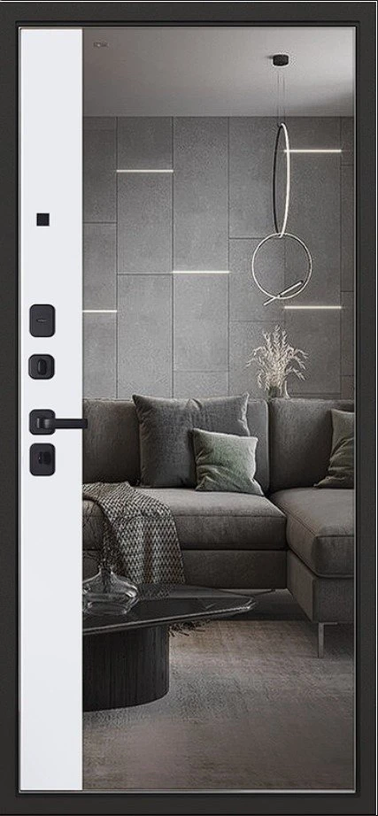 Надежная входная Дверь Scandi с зеркалом премиум класса по цене 45 347 руб. Большая толщина стали защитит от проникновения в ваш дом, квартиру или коттедж. Используется очень качественная фурнитура: замки, цилиндры, ручки, защелки. Покрытие и отделка двери изготовлено под внимательным контролем производителя. Дверь имеет долгий срок службы и гарантию.